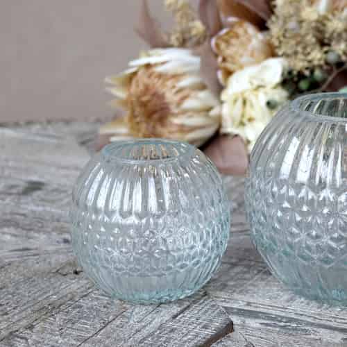 This Chic Antique glass vase stands out due to its hourglass shape and wavy top edge. It has subtle vertical ridges which add to its overall nice appeal. This small glass vase can be used for displaying a few flowers from the garden, as well as some grasses or twigs. You can also fill up this transparent vase with some decorative sand and stick some dried flowers into it. Place it on the windowsill or a shelf and enjoy its good looks. A small decoration, like this hourglass shaped vase from Chic Antique, can have a big effect in the room where it’s standing.