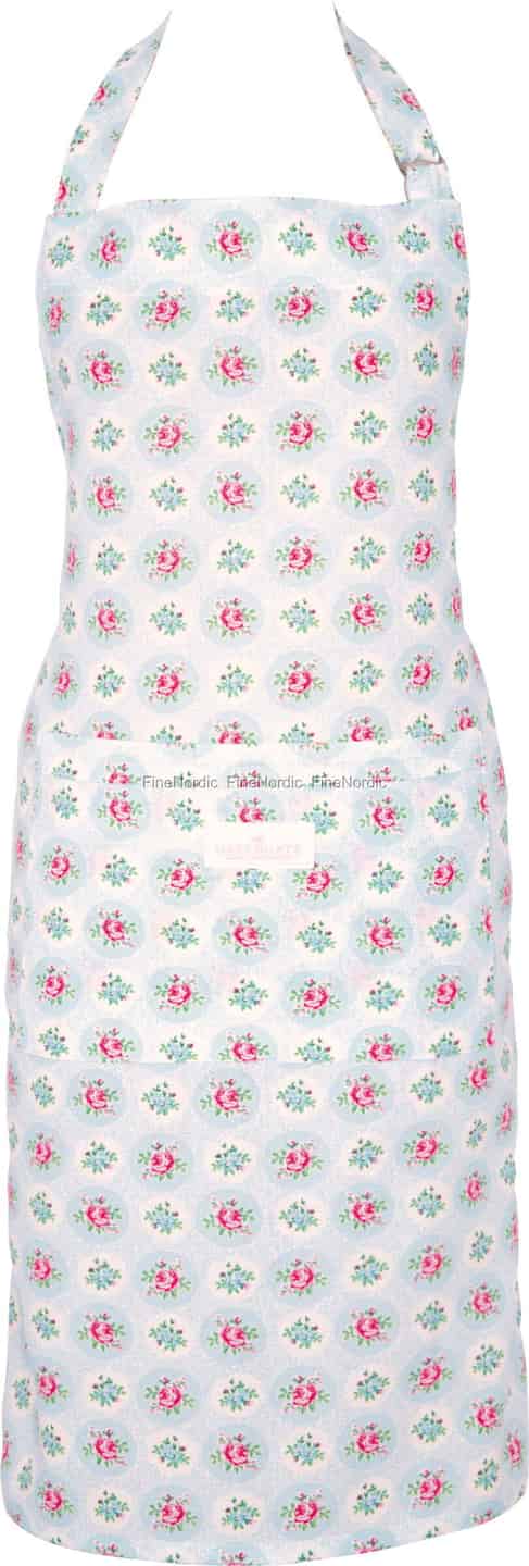 The charming pattern, a signature of GreenGate's design heritage, features delicate pink roses and tiny blue blossoms scattered across a canvas of pale blue and cream. With its generous cut and a convenient front pocket for your tools or recipes, this apron combines timeless beauty with everyday practicality. It’s a piece designed for creating memories, for those moments worth sharing.