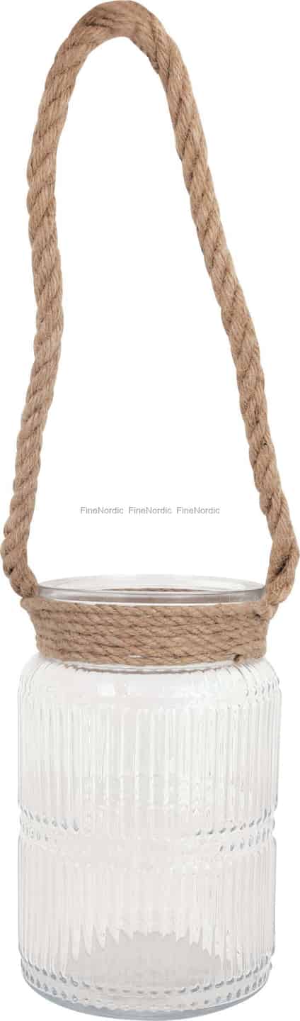 Discover the simple beauty of this GreenGate lantern, where refined glass meets rustic charm. The vertically ribbed surface of the clear glass is designed to create a beautiful, diffused glow, softening the light of a candle within and casting gentle patterns across your room. This elegant detail is perfectly complemented by the thick, natural rope wrapped around its neck, forming a handle that feels both practical and authentic. It’s a piece that speaks of windswept coastlines and quiet, peaceful moments.