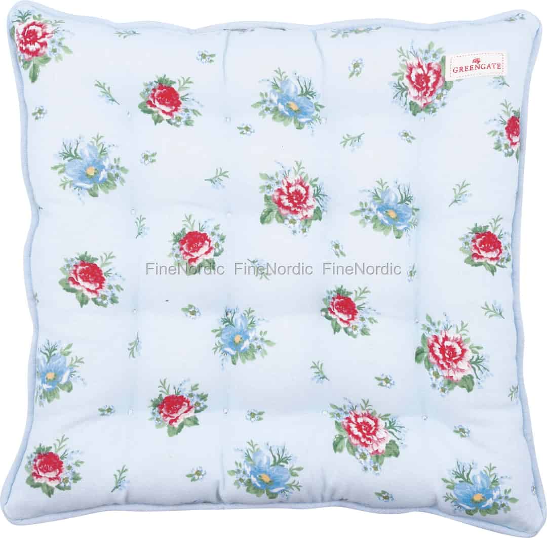Settle into the gentle comfort of a summer's day with the Alivia Pale Blue seat cushion from GreenGate. Its charming floral print, set against soft sky-blue cotton, invites you to linger a little longer over your morning coffee.
