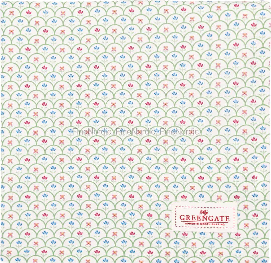 Inspired by the simple beauty of a blooming country garden, the Hella White tablecloth is a testament to GreenGate's philosophy of sharing joyful moments. The design features a wonderfully rhythmic pattern of soft green scallops, each one cradling a tiny, stylised flower in alternating shades of cornflower blue, warm pink, and soft coral. The details have a gentle, almost hand-stitched appearance against the crisp white cotton, creating a look that is both timeless and heartwarming. It’s a design that invites you to slow down and appreciate the small details.