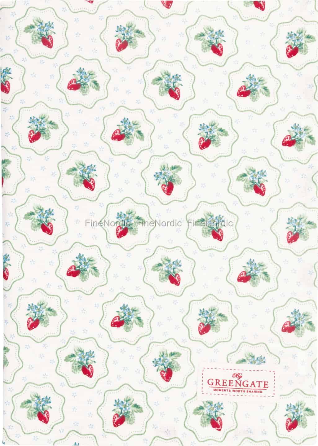 Imagine the gentle warmth of a summer afternoon, with the sweet scent of strawberries in the air. This delightful tea towel from GreenGate captures that very essence, bringing a touch of countryside charm to your daily kitchen rituals.