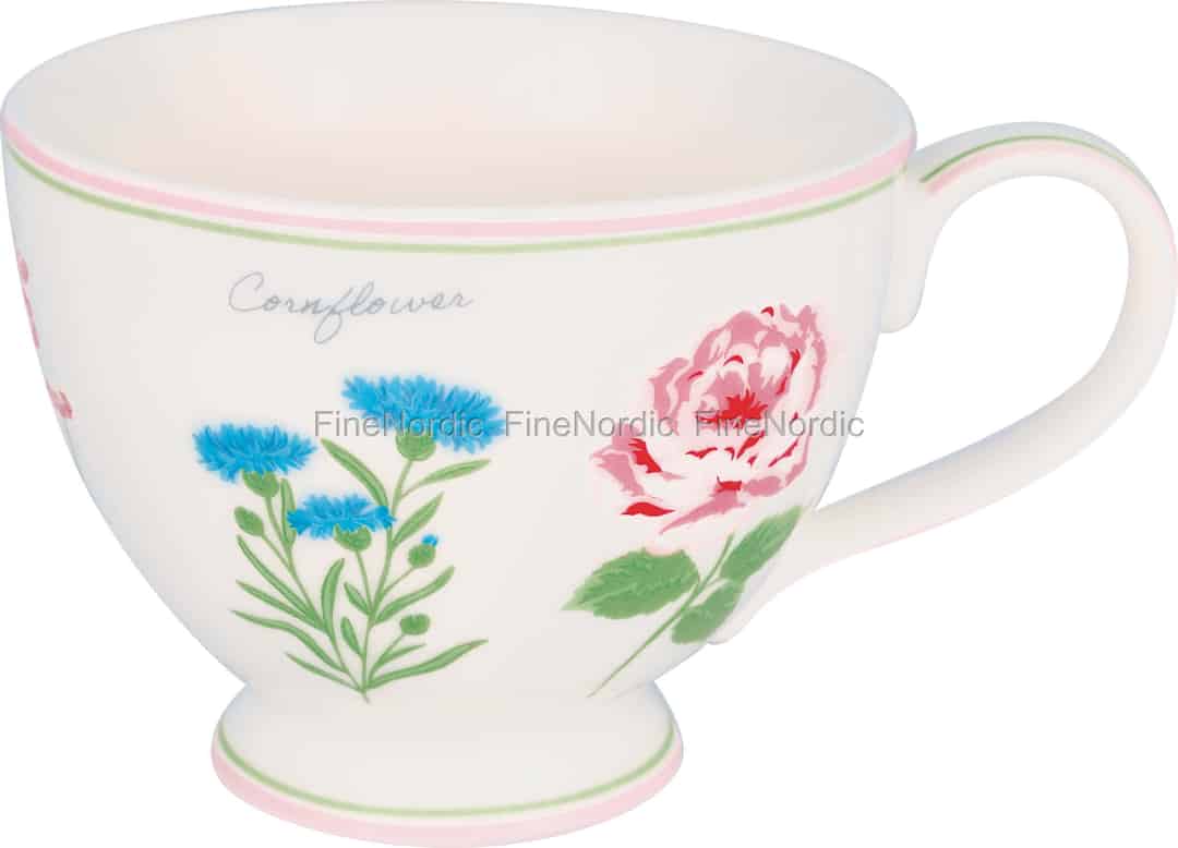 The Agnes White collection from GreenGate is a love letter to the wild beauty of a Scandinavian meadow in full bloom. This teacup captures that spirit perfectly, inviting you to pause and appreciate the small, beautiful details in your day. Trace the delicate lines of the vibrant blue cornflower and the soft petals of the classic pink rose as you enjoy your tea. The charming cursive script and the sweet pink and green stripes add a layer of nostalgic, storybook appeal that is quintessentially GreenGate.