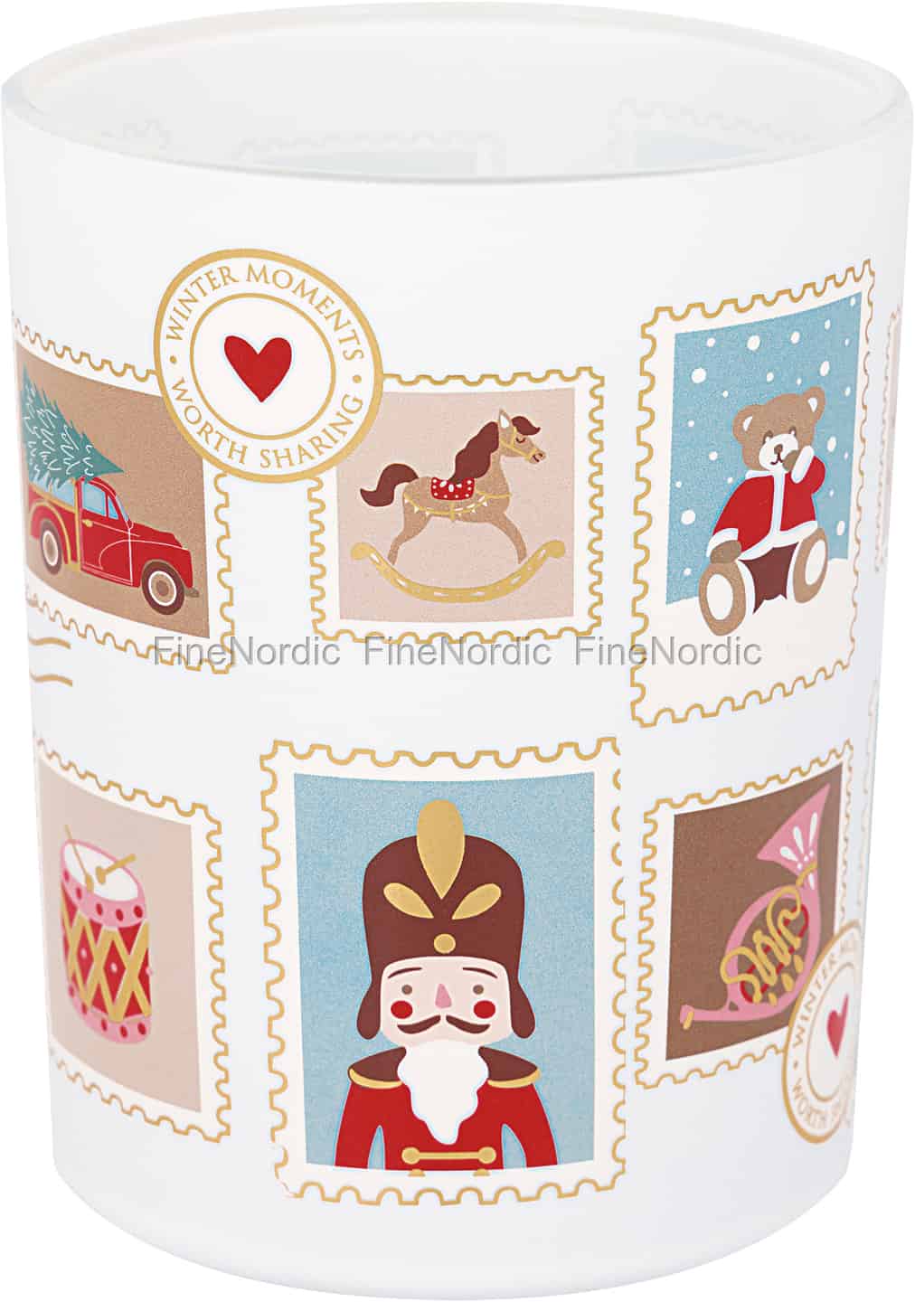 Remember the magic of receiving Christmas post? GreenGate’s Xmas Letter collection captures that heartfelt nostalgia. This lovely tealight holder is like a collection of cherished postcards from Christmases past, each stamp telling a tiny, joyful story. The frosted glass surface provides a perfect canvas for the detailed illustrations of rocking horses and toy soldiers, all rendered in a soft, timeless palette. The message, 'Winter Moments Worth Sharing', serves as a gentle reminder of what the season is truly about.