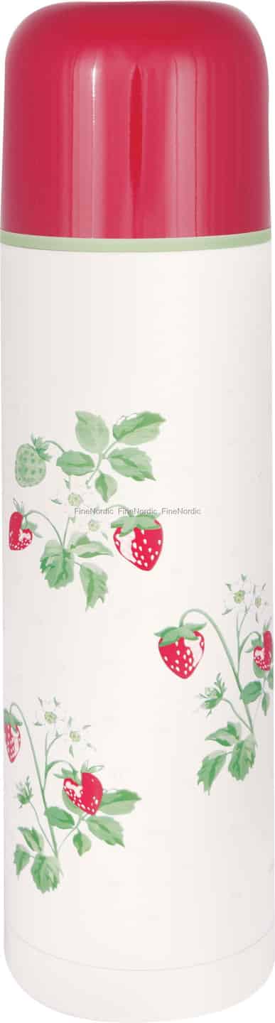 Let the delightful Berry White thermos from GreenGate transport you to a sunlit strawberry patch on a perfect summer's day. The beautifully detailed pattern, featuring ripe red berries and delicate white blossoms, is a signature of GreenGate's ability to blend nostalgia with timeless Scandinavian design. The off-white background provides a soft canvas for the vibrant print, while the glossy red lid offers a cheerful contrast, reminiscent of freshly picked fruit. This isn't just a container for your drink; it's a piece of everyday art that tells a story of simple pleasures.