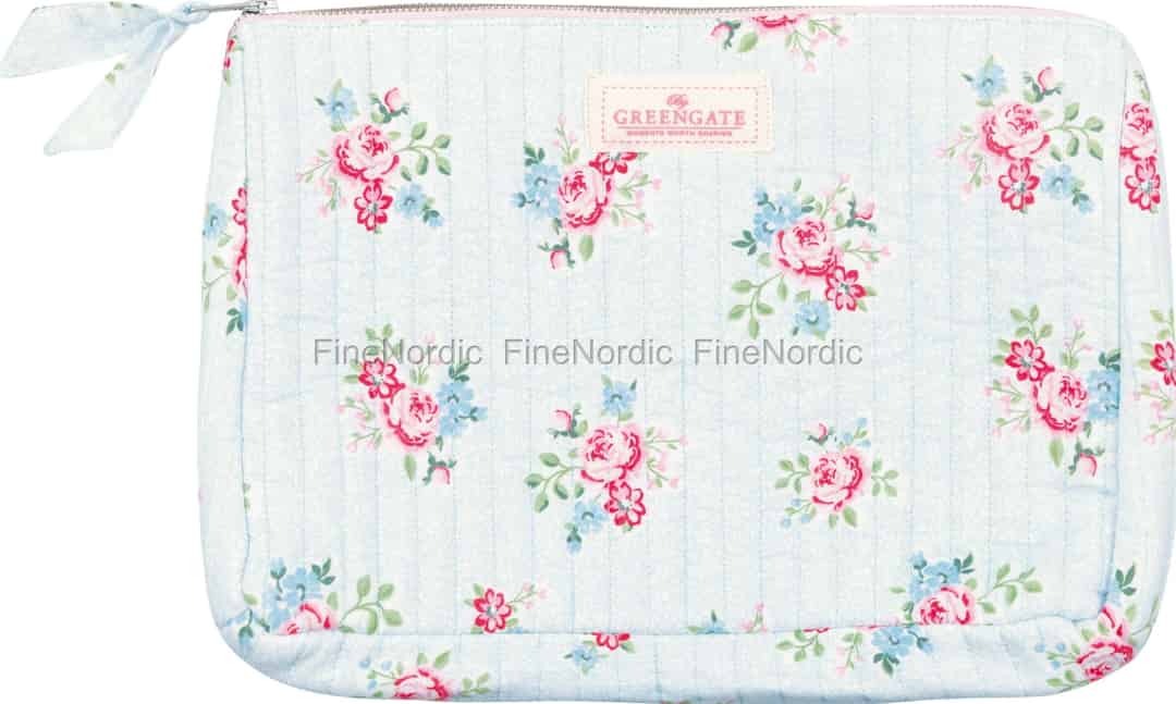 Imagine the gentle charm of a summer garden, captured in soft, quilted cotton. The Nikolina Pale Blue wash bag from GreenGate brings this idyllic scene to life, turning your daily routines and travels into moments of quiet beauty.