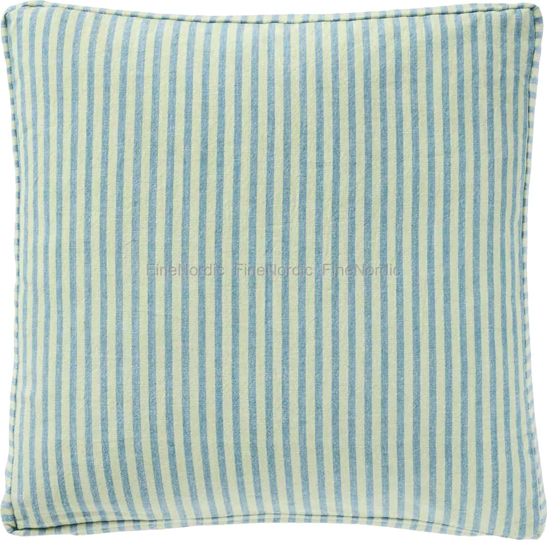 Ib Laursen Box Cushion Cover "Linea" with Light Green and Blue Thin Stripes 45 x 45 cm