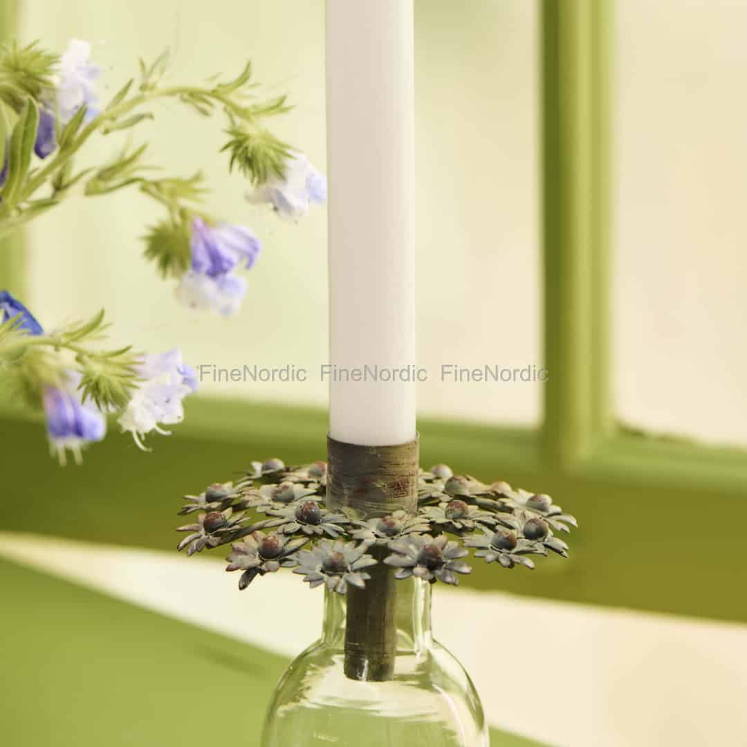 Discover the quiet joy of creating something new from something old with this wonderfully characterful candle holder from Ib Laursen. Crafted from metal with a carefully distressed finish, it tells a story of rustic simplicity. Each holder is adorned with a delicate botanical wreath, a tiny garland of flowers and berries that seems to have been gathered from a Nordic meadow. This isn't just a candle holder; it's a small piece of art designed to spark your creativity and bring a touch of weathered, romantic charm into your home.