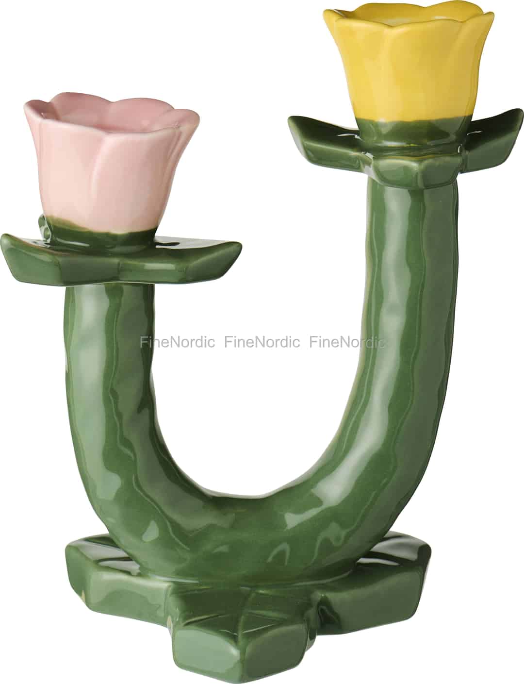 Recapture the simple joy of a garden in full bloom with this wonderfully imaginative candle holder from Ib Laursen. Its sculptural form, reminiscent of a proud tulip stem, brings an organic and playful energy to your living space. The glossy green ceramic catches the light beautifully, providing a vibrant base for the two delicate flower cups—one blushing pink, the other a cheerful yellow—that wait to hold your favourite dinner candles. It’s a piece that tells a story of new beginnings and sunny afternoons.