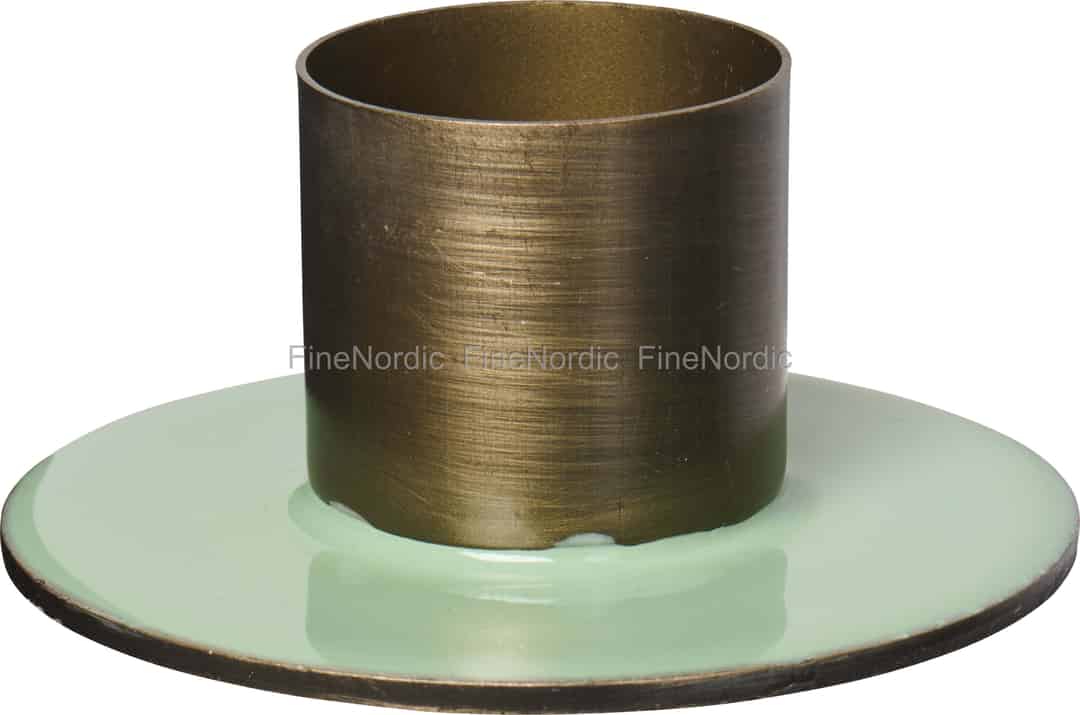 Imagine the soft flicker of candlelight dancing across a room, its warmth captured by this charming holder from Ib Laursen. The unique pairing of a glossy, light green enamel base and a rustic, antique brass finish creates a quiet moment of beauty for your home.