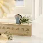 Crafted from a single piece of natural wood, the calendar’s minimalist design is complemented by elegant gold lettering and a touch of glitter. The serene angel, with her pale blue gown and peaceful expression, brings a comforting presence to your home. Place her on your mantelpiece, a favourite shelf, or a windowsill, and let her be your serene companion on the journey to Christmas Day.