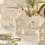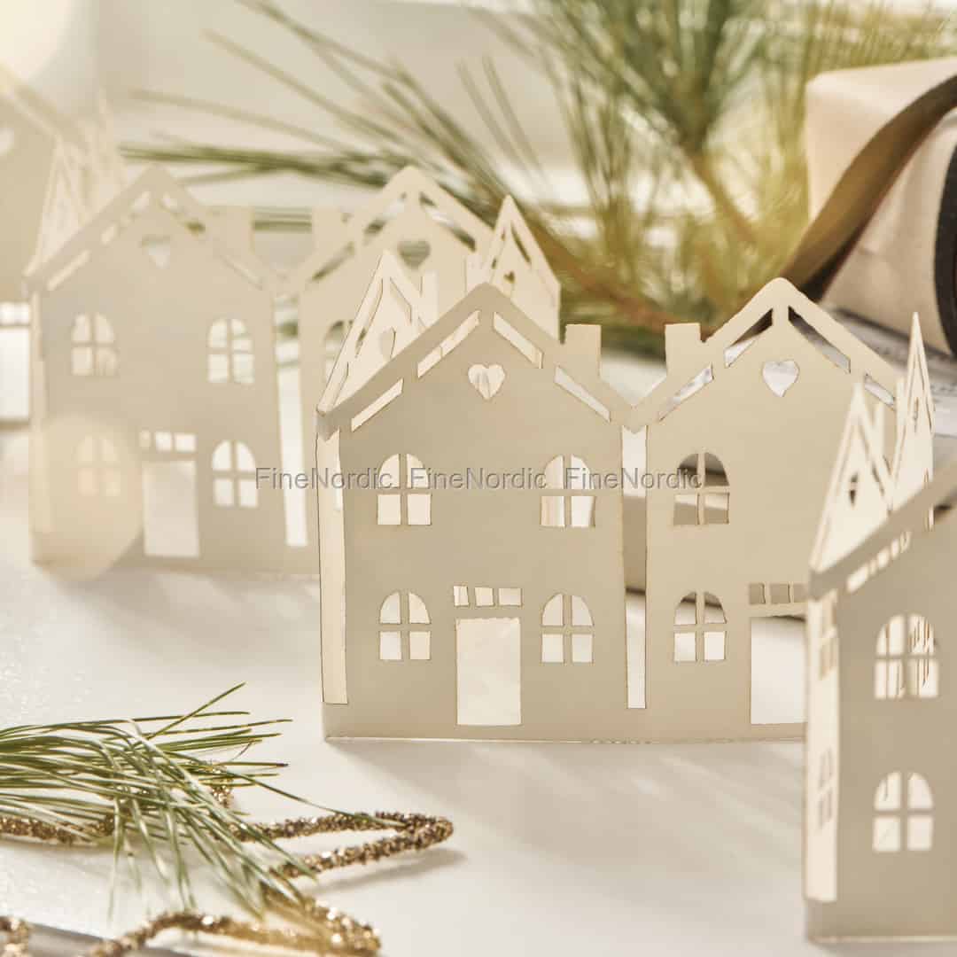 Let the quiet charm of a Scandinavian winter settle in your home with this exquisite paper house decoration by Ib Laursen. Unfold this delicate street of townhouses and watch as a miniature world comes to life. The intricate cut-outs—from the arched windows to the sweet heart in each gable—are designed to capture the light, creating a beautiful play of light and shadow that feels both peaceful and festive. It’s a simple, elegant piece that tells a story of community and warmth, reminiscent of wandering through cobbled streets on a crisp Christmas Eve.