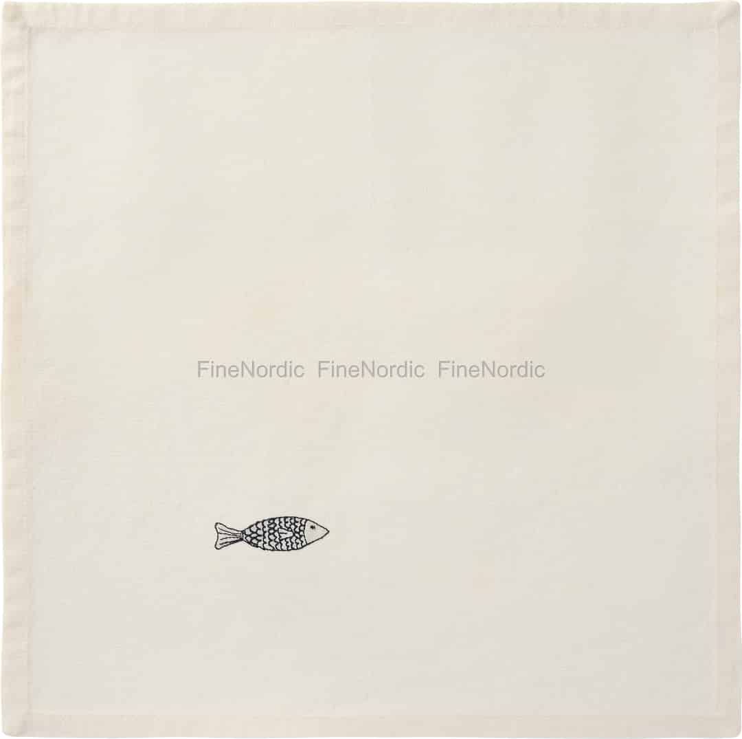 The 'Atlantis' napkin by Ib Laursen is a beautiful study in Scandinavian simplicity. Its design philosophy is clear: less is more. The warm, butter cream cotton provides a soft, inviting canvas, reminiscent of sandy shores on a calm day. Against this gentle backdrop, a single, deep blue embroidered fish swims quietly, a subtle nod to the rich maritime heritage of the north. It’s a piece that doesn’t shout for attention but rather whispers a story of quiet moments and natural beauty, inviting you to slow down and savour the meal before you.