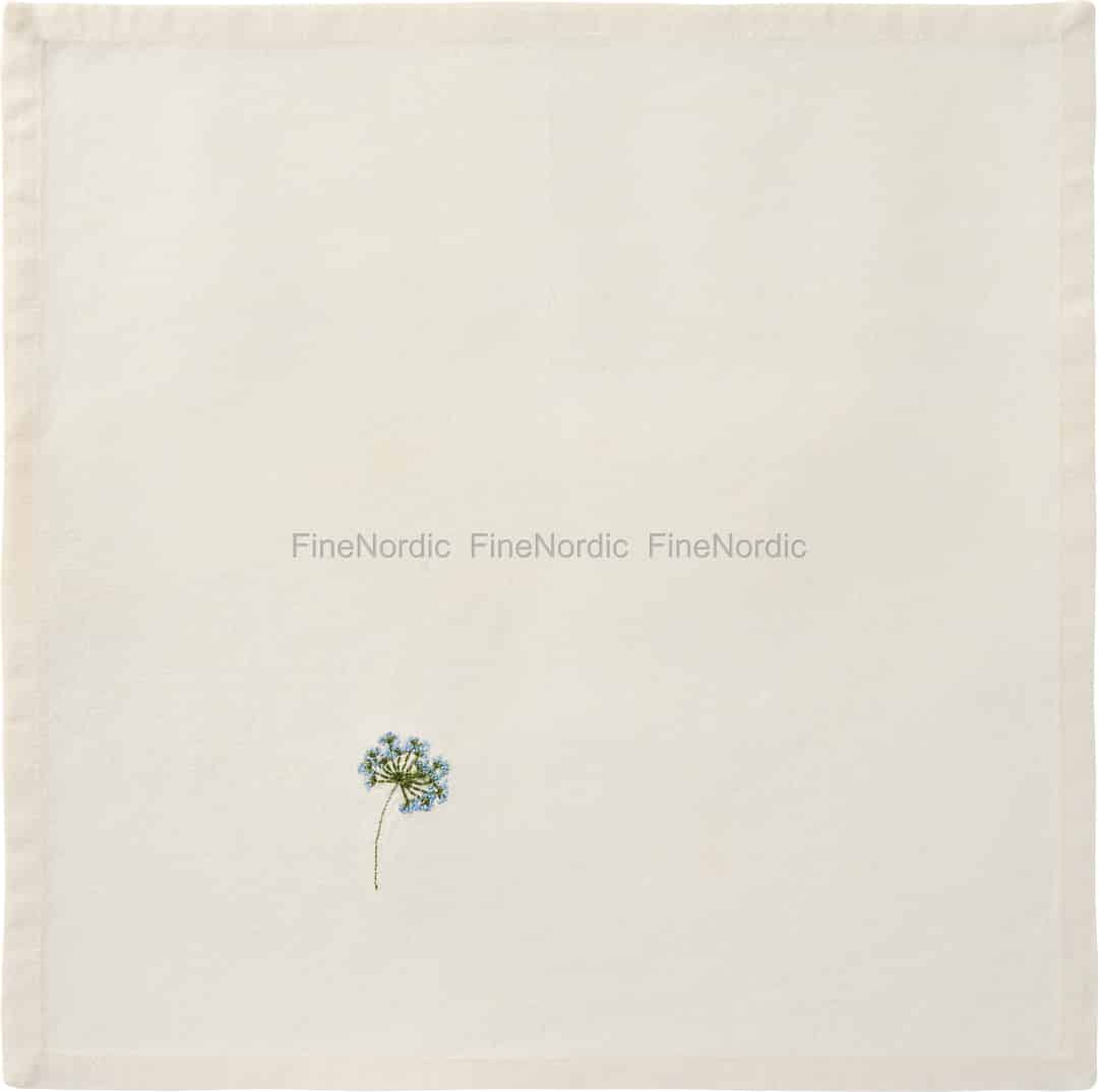 Imagine your table set with the simple charm of a country meadow. This beautiful butter-cream napkin, crafted from soft cotton, features a single, delicately embroidered blue umbel flower, adding a whisper of nature's poetry to your meals.
