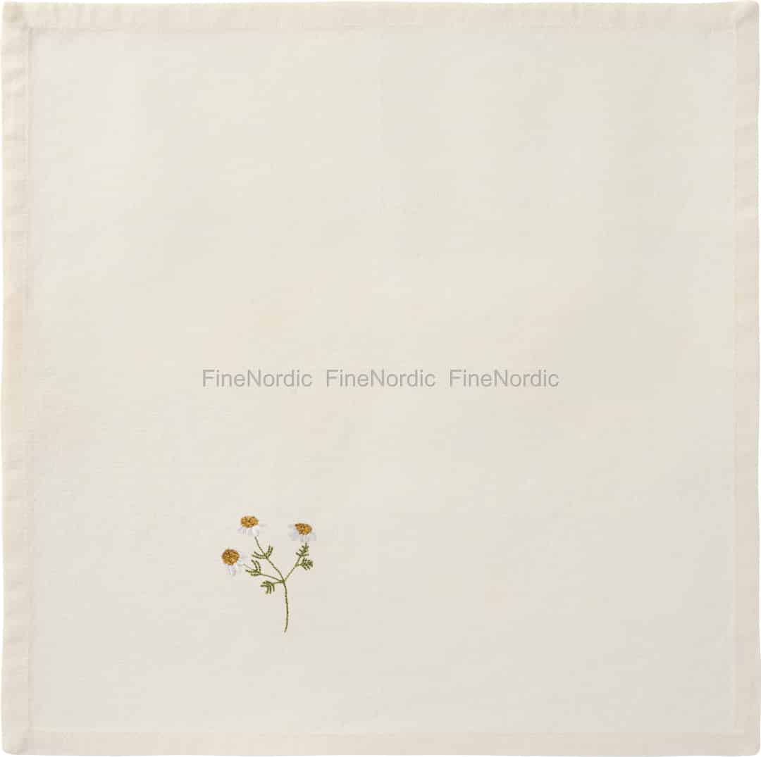 Imagine a table set for a quiet morning coffee or a leisurely lunch. This beautiful butter cream napkin from Ib Laursen brings a whisper of a summer meadow indoors with its delicately embroidered daisies, adding a thoughtful touch to any meal.