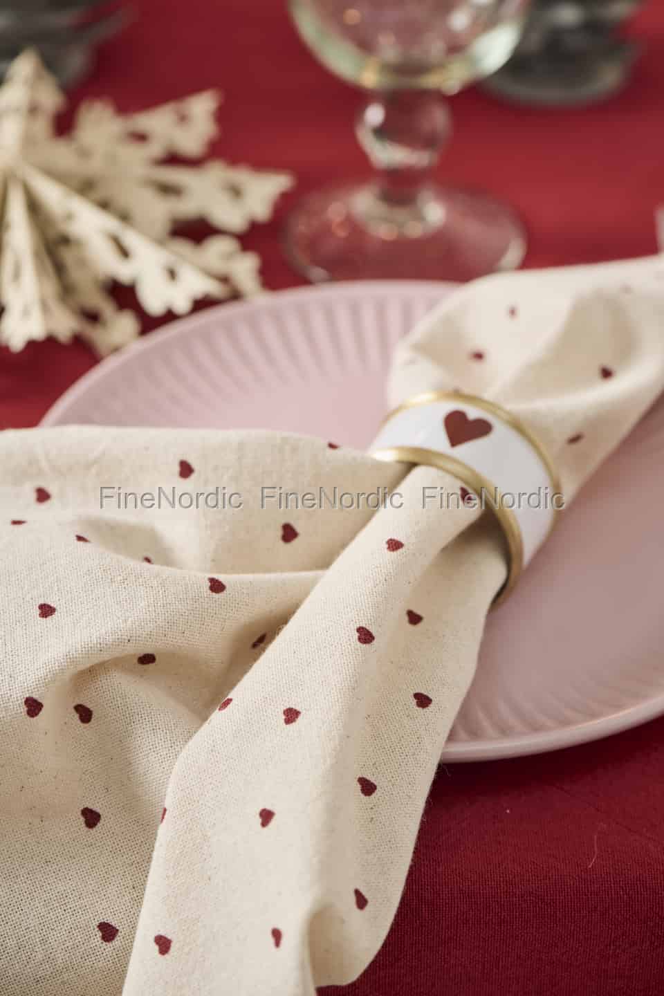 Unfold a little warmth at your next meal with the Valentin napkin from Ib Laursen. Crafted from soft, natural cotton and dotted with sweet red hearts, it’s a simple detail that makes any gathering feel more personal and cherished.