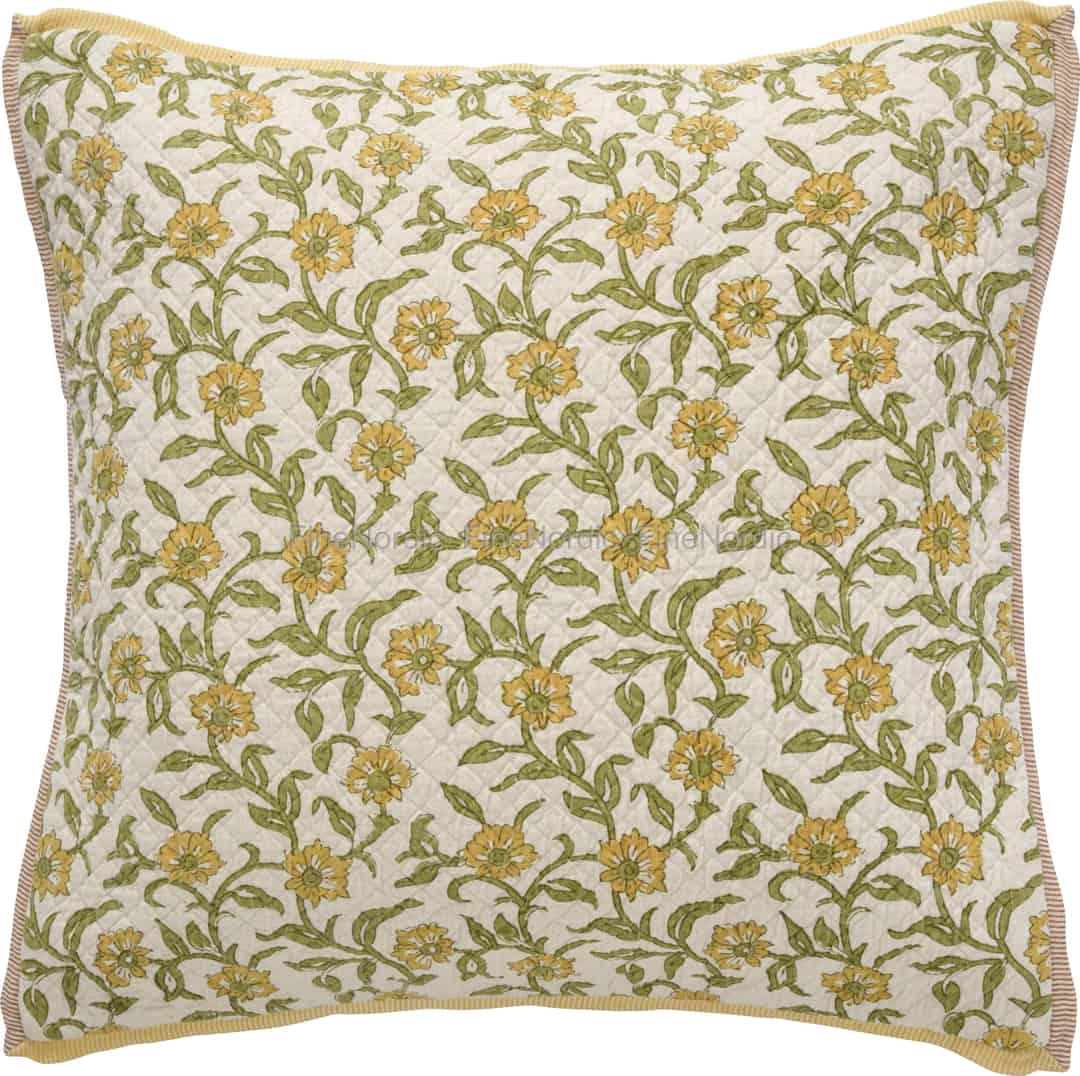 The Vigga cushion cover captures the essence of a perfect day spent in a Scandinavian country garden. Its charming block-print floral pattern unfolds across a canvas of soft, quilted cotton, telling a story of wildflowers basking in the gentle sun. Each yellow bloom and winding green stem is designed to evoke a sense of simple, rustic beauty, transforming your sofa or reading nook into a peaceful retreat. The design is a celebration of nature's quiet artistry, bringing a touch of the outdoors inside.