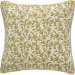 Ib Laursen Cushion Cover "Vigga" - Yellow and Green Print Double Weaving, Backside Neutral 50 x 50 cm