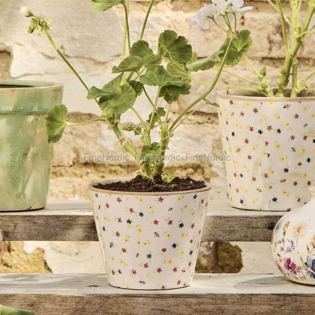 Let the simple, heartfelt charm of the Danish countryside find a place in your home with this beautiful flower pot from Ib Laursen. The 'Petit Fleur' design is a celebration of nature's small wonders, featuring a scattering of colourful wildflowers and friendly bees on a soft, off-white ceramic base. The rustic, unglazed rim adds an authentic touch, reminiscent of traditional pottery found in a gardener's potting shed. It’s a piece that feels both nostalgic and wonderfully fresh, ready to tell its own story.