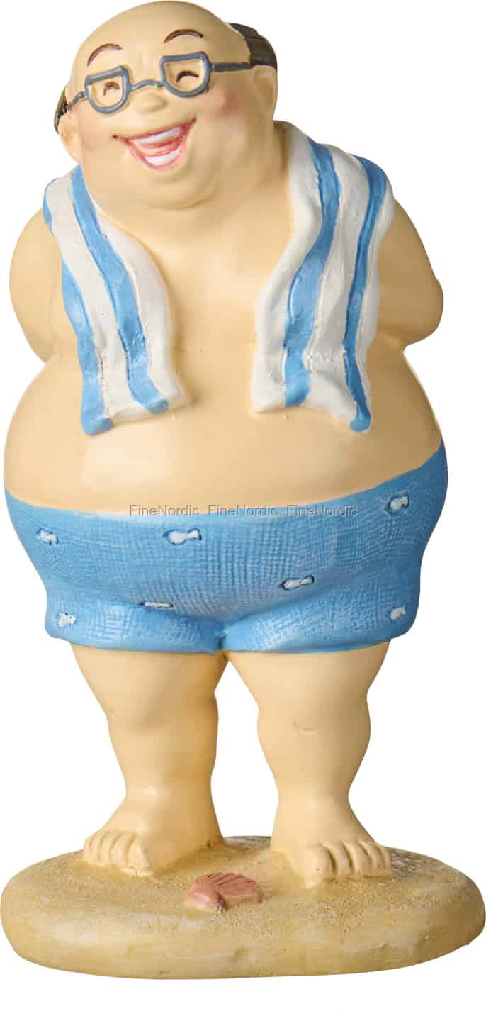 Meet one of Ib Laursen's 'Beach Kings', a character who embodies the pure, unbridled happiness of a perfect seaside holiday. You can almost feel the warm sun and hear the gentle waves just by looking at his contented expression. He stands with his toes in the 'sand', a striped towel slung casually over his shoulders, ready for a paddle or perhaps just enjoying the view. This figurine isn't just a decorative object; it's a small story, a reminder of sunny days and salty air.