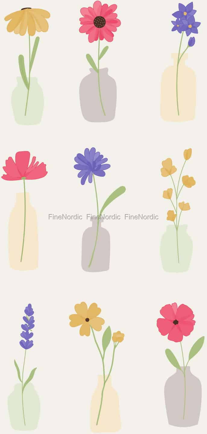 Let the simple, heartfelt beauty of a Scandinavian garden grace your table. From the renowned Danish brand Ib Laursen, these paper napkins are a celebration of life's quiet moments. The design, with its sweet illustrations of individual wildflowers in delicate vases, evokes the feeling of freshly picked blooms brightening up a windowsill. The soft, muted palette of pinks, yellows, and blues against a warm, creamy background adds a gentle touch of colour that feels both cheerful and serene.