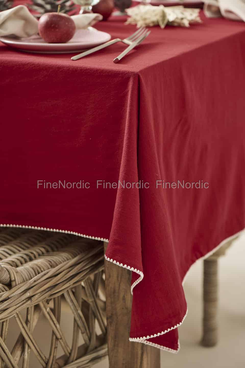 Ib Laursen Tablecloth "Dagmar" Oblong Red with White Border Stitching 150 x 250 cm