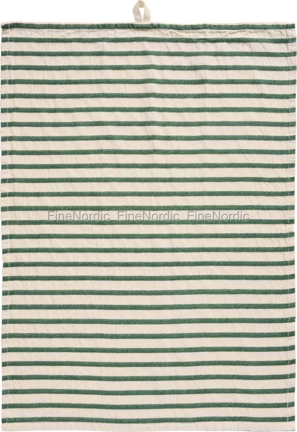 Imagine the simple pleasure of a beautifully functional kitchen essential. The Eske tea towel from Ib Laursen, with its soft, woven cotton and classic dark green stripes, brings a touch of natural, understated elegance to your daily routines.