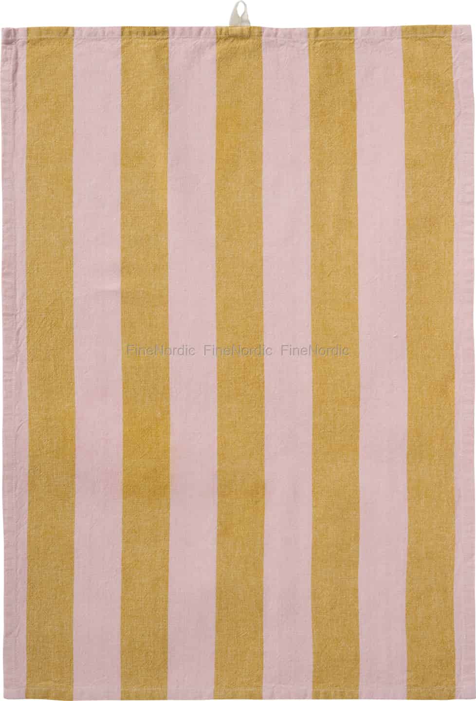 Imagine the soft morning light catching the cheerful stripes of this beautiful tea towel. The warm mustard and gentle pink hues bring a sense of simple joy to your kitchen, turning even the smallest tasks into pleasant moments.