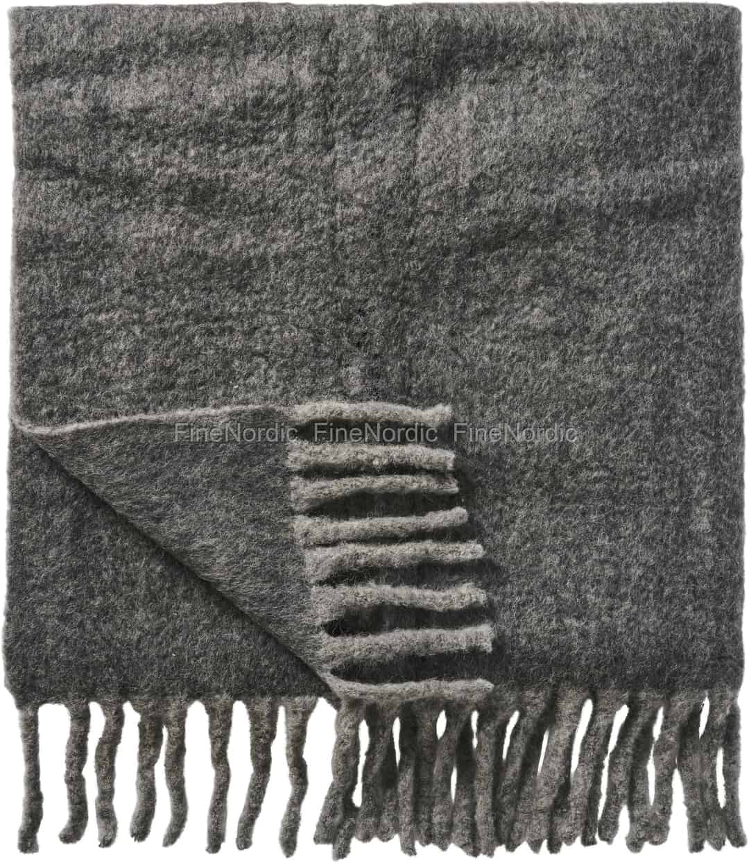Ib Laursen Throw Anthracite "Melange" with Light Grey Fringes 130 x 170 cm