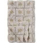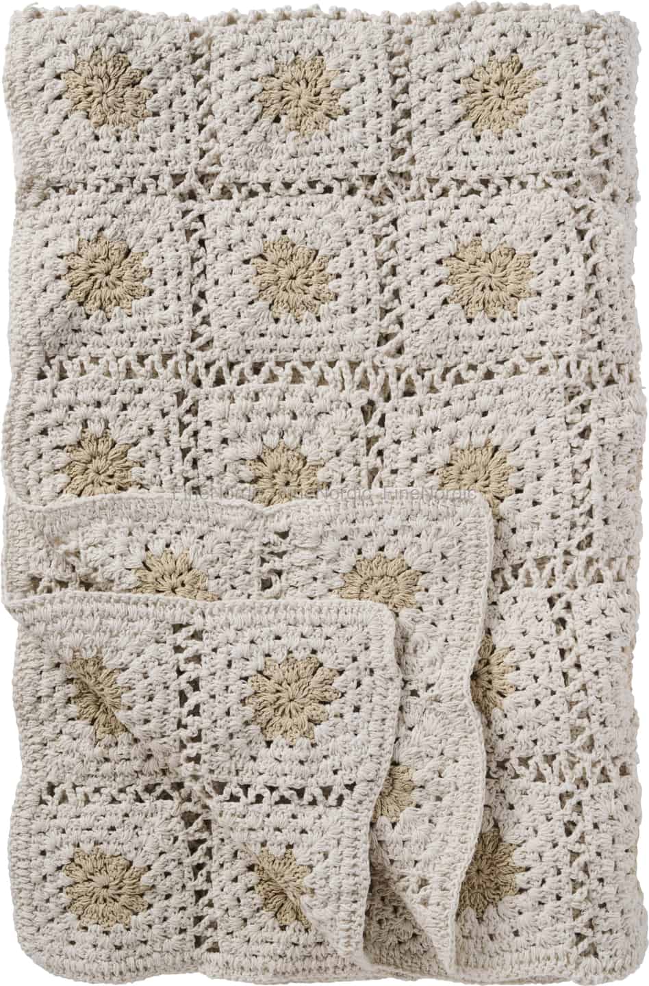 Ib Laursen Throw - Crocheted - Cream - Natural Coloured Flowers 130 x 170 cm