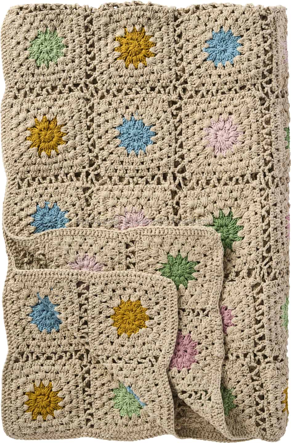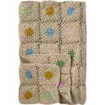 Ib Laursen Throw - Crocheted - Natural Coloured - Multicoloured Flowers 130 x 170 cm