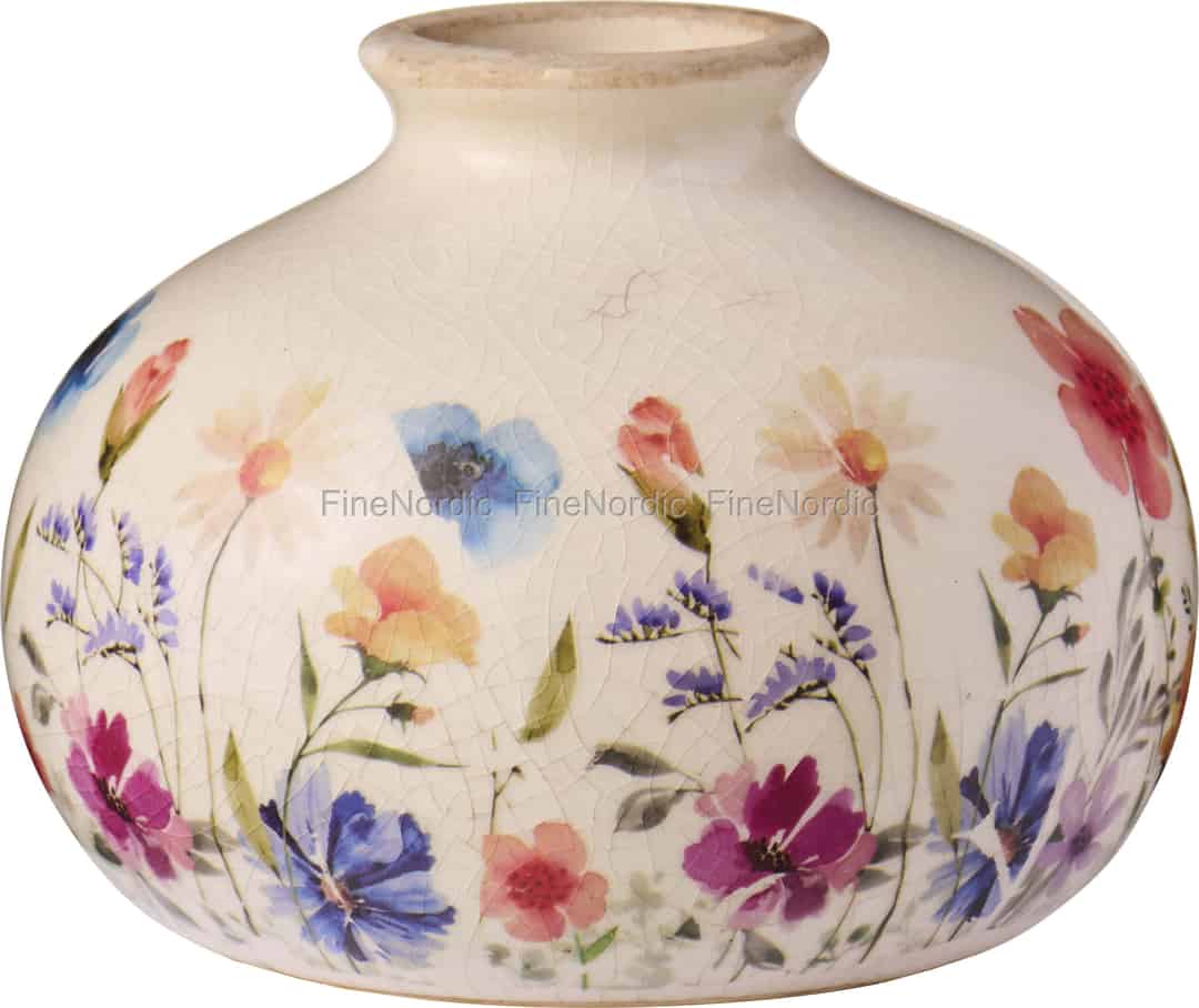 Let the gentle charm of a sun-dappled meadow blossom in your home with this exquisite vase from Ib Laursen. Each delicate flower, from the deep blue cornflowers to the soft pink poppies, is rendered in a beautiful watercolour style, creating a scene that feels both vibrant and serene. The rounded ceramic form provides the perfect canvas for this celebration of nature, while the intricate crackle-glaze finish adds a layer of depth and nostalgic character. It’s more than just a vessel for flowers; it's a small piece of art that tells a story of rambling country gardens and quiet, simple moments.