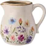 Imagine stepping in from the garden, your hands filled with freshly picked wildflowers. This charming pitcher vase is their perfect home, its rustic design and gentle colours echoing the untamed beauty of a summer meadow.