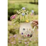 Let the simple, heartfelt charm of the Danish countryside blossom in your home. This beautiful vase from Ib Laursen is crafted to feel like a cherished find from a rustic farmhouse kitchen. Its surface, a canvas of off-white ceramic with a delicate crackled glaze, tells a story of warmth and time. The watercolour illustrations of wildflowers seem to dance across the jug, capturing a fleeting moment of natural beauty in soft shades of blue, pink, and lilac. The rustic, earthy-toned rim and classic handle complete its authentic, handcrafted appeal, inviting you to slow down and appreciate the small details.