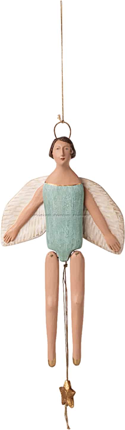 Invite a touch of timeless magic into your festive season with this beautiful Maileg angel. With a gentle pull of her golden star, her limbs dance with joy, bringing a whisper of nostalgic wonder to your home.