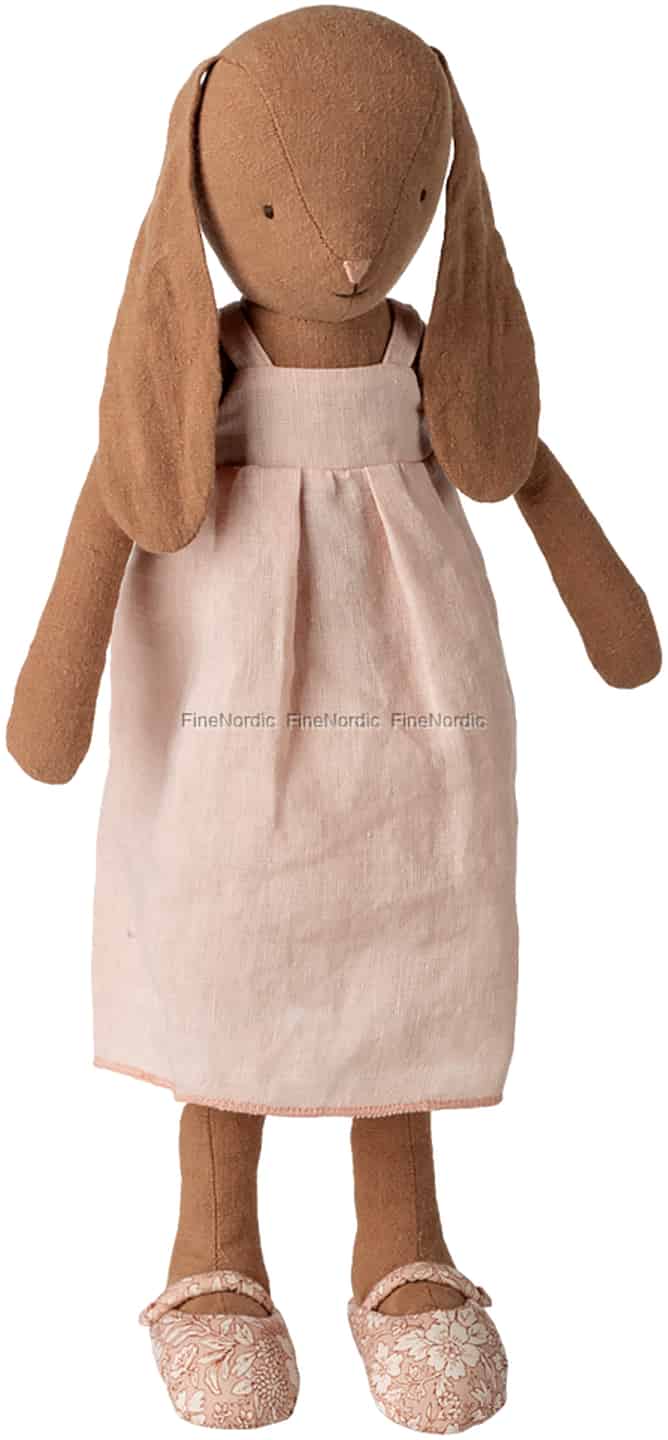 Imagine the quiet delight as your little one meets their new best friend. This beautiful Maileg bunny, with her warm chocolate-brown fur and kind, stitched eyes, is designed to be loved. Her long, floppy ears are perfect for listening to secrets, and her soft, huggable body is ready for endless cuddles. She comes dressed for a day of gentle play in a simple pink dress and the sweetest floral shoes, her outfit reflecting the timeless charm of Scandinavian design. Every detail is thoughtfully considered to spark joy and comfort.