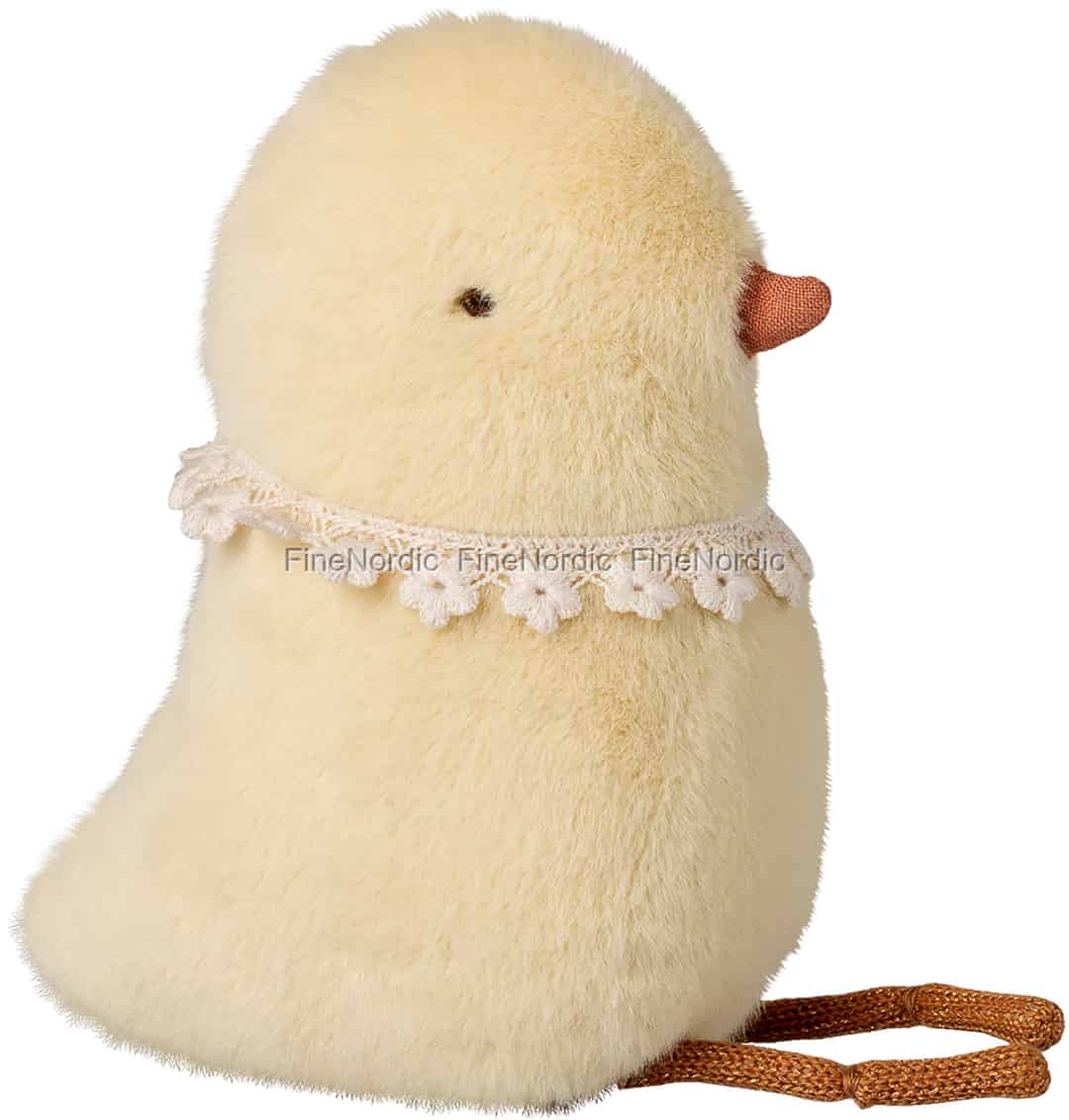 Straight from the enchanting world of Maileg, this little chicken arrives to fill your home with warmth and wonder. Its design captures the essence of a bright spring morning, with buttery-soft fur that invites the gentlest of touches and a sweet, curious expression that seems to hold a secret story. Notice the beautiful lace collar, a signature Maileg detail that speaks of heirloom quality and a love for the little things. This isn't just a toy; it's a character waiting for a name and a role in your child's imaginative world.