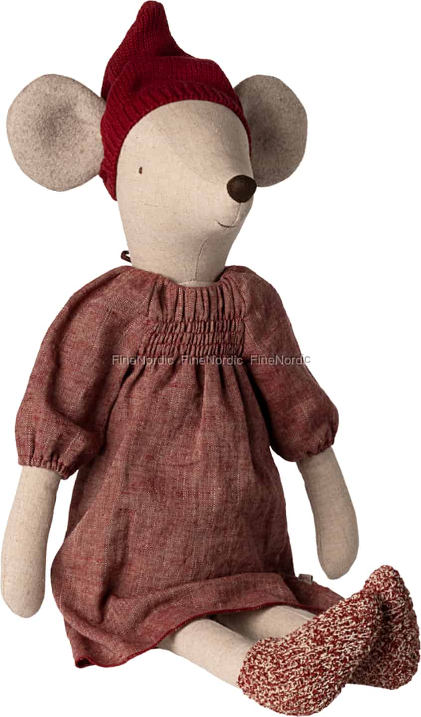 Imagine the quiet magic of a Christmas morning, with a new friend waiting by the fireside. This charming Maxi Mouse from Maileg is ready to share in all your festive stories, dressed in her finest holiday attire.