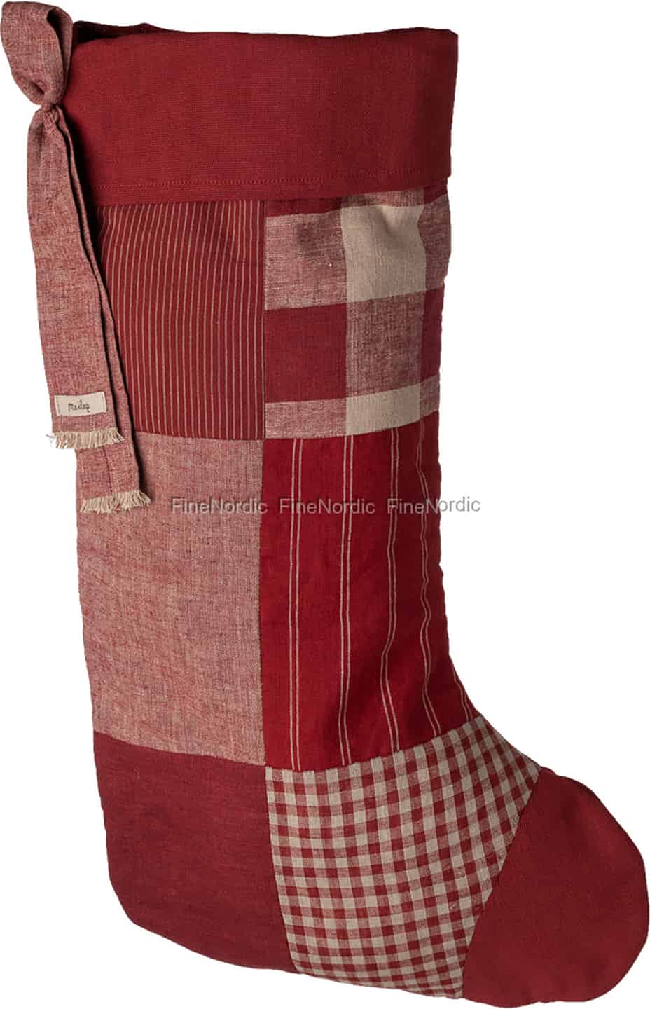 Hang this beautiful Maileg stocking by the chimney with care, and create a scene steeped in nostalgic Christmas charm. The wonderful patchwork of rustic reds and warm, natural tones tells a story of cosy winter evenings and cherished family traditions. Each panel, from the classic gingham to the simple stripe, is carefully stitched from soft cotton, creating a piece that feels both new and wonderfully familiar, as if it has been passed down through generations.