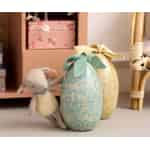 Maileg reimagines the magic of the Easter egg hunt with a gift designed to be cherished long after the holiday has passed. This exquisite metal egg, decorated in a serene dusty mint with whimsical silhouettes of leaping rabbits, is a treasure in itself. Untie the soft green ribbon to reveal the true secret: a wonderfully soft micro lamb, waiting inside with a friendly smile. It’s a delightful surprise that sparks immediate joy and imaginative tales.