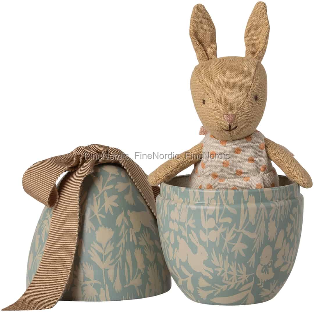 Maileg Easter Egg with Micro Rabbit - Small - Dusty Blue