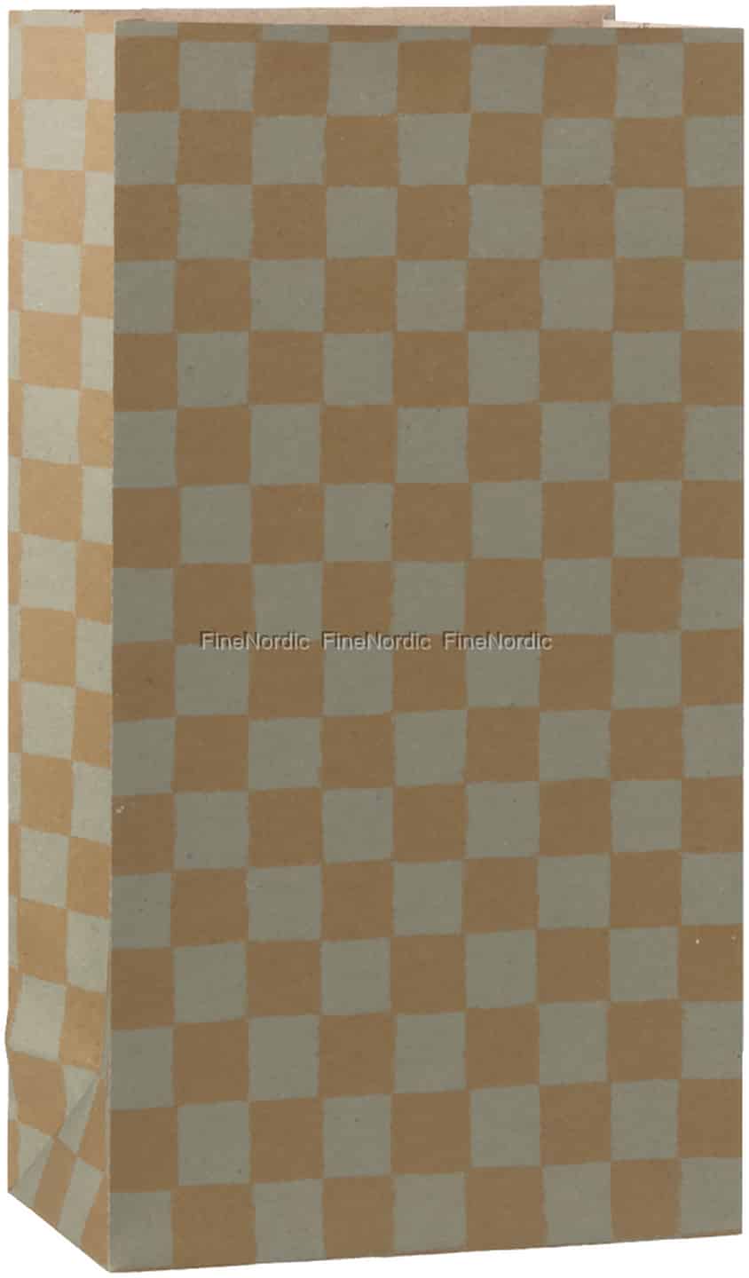 The anticipation of giving a special gift deserves a presentation to match. This beautiful paper bag from Maileg, with its gentle checkerboard pattern in soft mint and warm ocher, turns a simple gesture into a memorable moment.
