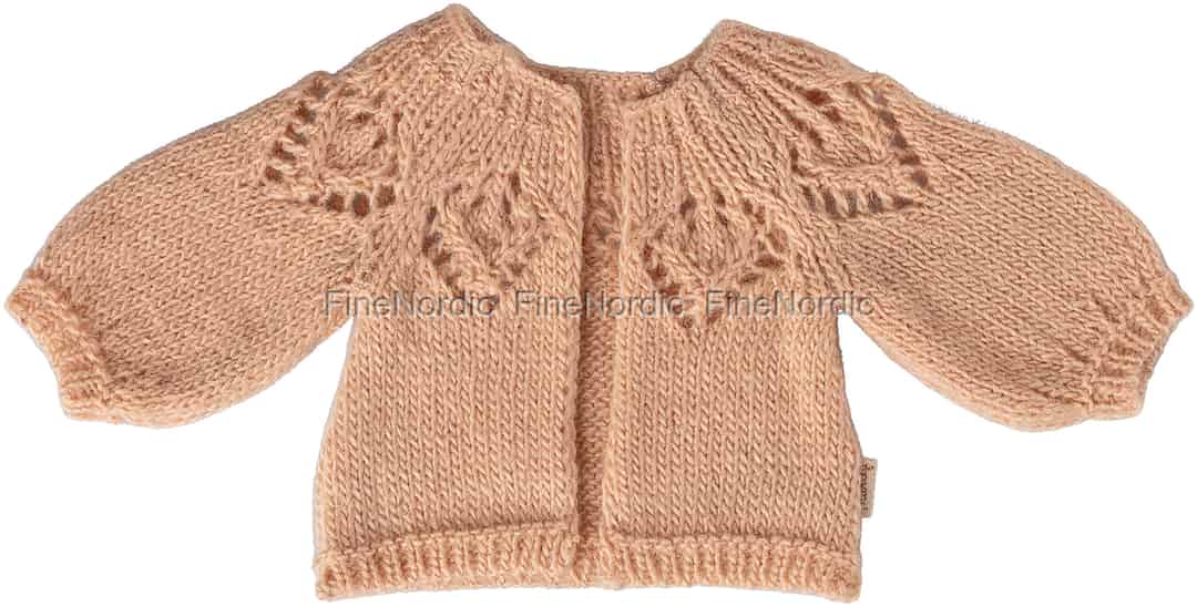Every detail of this miniature cardigan is designed to inspire wonder. The soft, light rose yarn is knitted into a timeless piece, featuring delicate, open-work detailing around the neckline that speaks of careful craftsmanship. The gentle puff of the sleeves adds a whimsical silhouette, perfect for Maileg’s cherished Size 3 rabbits and bunnies. It’s more than just an accessory; it’s a tiny treasure that brings a new layer of personality to a beloved friend, making them ready for a quiet afternoon of make-believe.