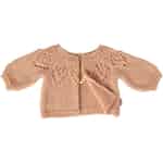 Every detail of this Maileg cardigan is designed to inspire stories. The soft, light rose knit feels wonderfully gentle, and the intricate open-work pattern across the shoulders showcases the thoughtful craftsmanship Maileg is known for. The charming puffed sleeves and classic ribbed hem create a timeless silhouette, transforming a simple outfit into something truly special. It’s a garment that invites you to slow down and appreciate the small, beautiful details that bring imaginary worlds to life.