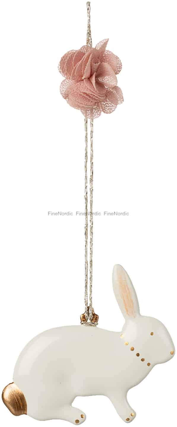 Discover the quiet charm of Maileg's world with this sweet sitting bunny ornament. Every detail is designed to spark joy, from the smooth, off-white metal body to the glint of hand-painted gold on its tiny paws and tail. A delicate collar of golden dots adds a touch of playful elegance, while its gentle expression seems to hold a little secret. This is more than a decoration; it's a small character ready to become part of your family's seasonal stories and traditions, year after year.