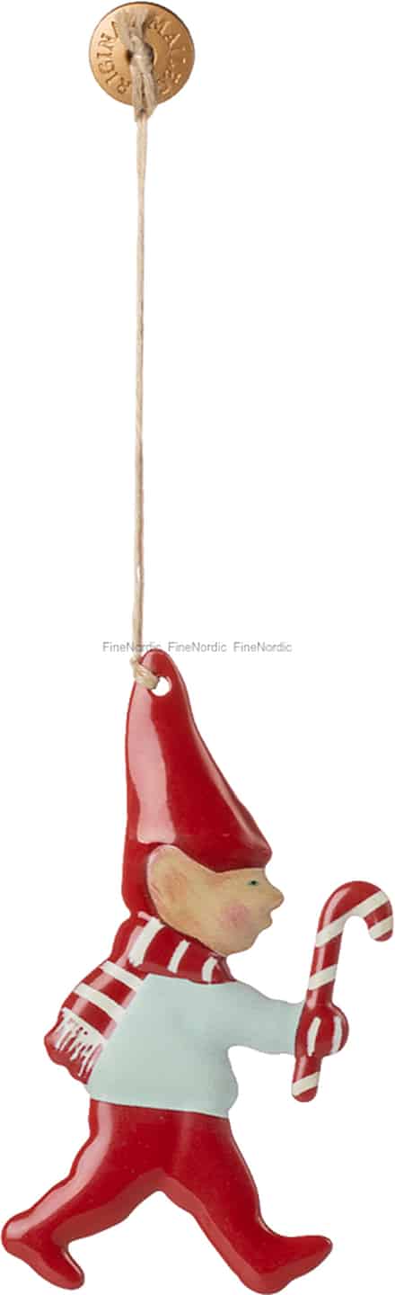 Welcome a little piece of Scandinavian Christmas magic into your home with this enchanting metal pixy from Maileg. With a glossy red hat, a cosy striped scarf, and a sweet sugar cane held tight in his hand, he is on a very important festive mission. The beautiful, hand-painted finish gives him a life and personality all his own, transforming him from a simple decoration into a tiny character with a story to tell. His rosy cheeks and gentle expression are sure to capture hearts, young and old.