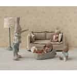 Every tiny friend deserves a soft place to rest their head after a day of adventure. With the Maileg Miniature Carry Cot, you can provide a beautiful, cosy bed for your micro bunny or rabbit, ensuring they are always comfortable. The exterior, adorned with a gentle floral pattern on dusty blue fabric, whispers of quiet country gardens, while the warm, striped interior lining offers a delightful contrast. It’s a tiny haven of comfort, designed to be carried from room to room as new stories unfold.