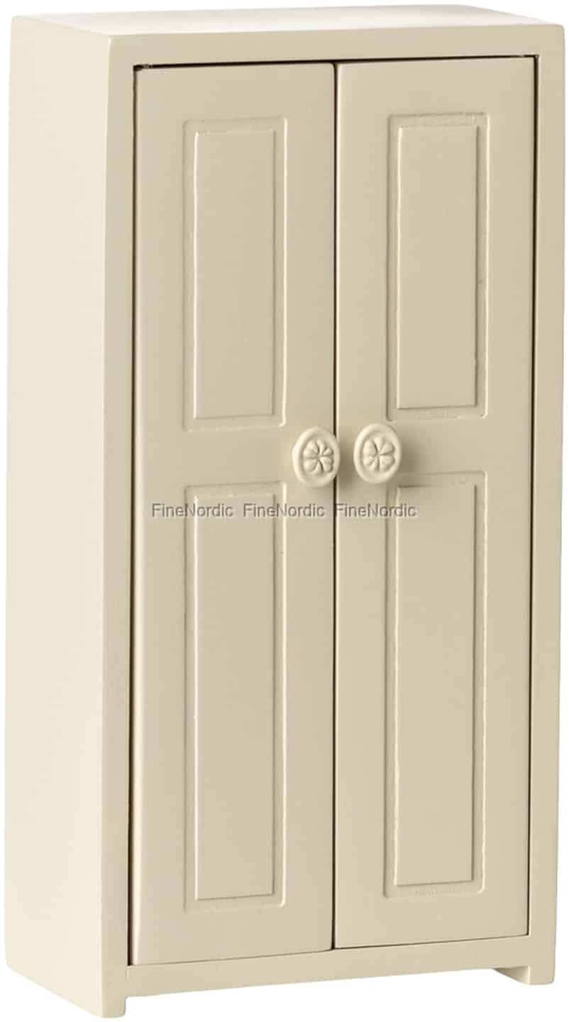 Introduce a touch of classic Scandinavian design to your Maileg world with this exquisite miniature closet. Painted in a gentle cream, its simple, elegant lines and panelled doors evoke the charm of a full-sized family heirloom, thoughtfully scaled for your tiniest friends. The small, floral-carved knobs are a delight to discover, inviting little hands to open the doors and peek inside at the treasures stored within. It’s a piece that feels both playful and beautifully made.