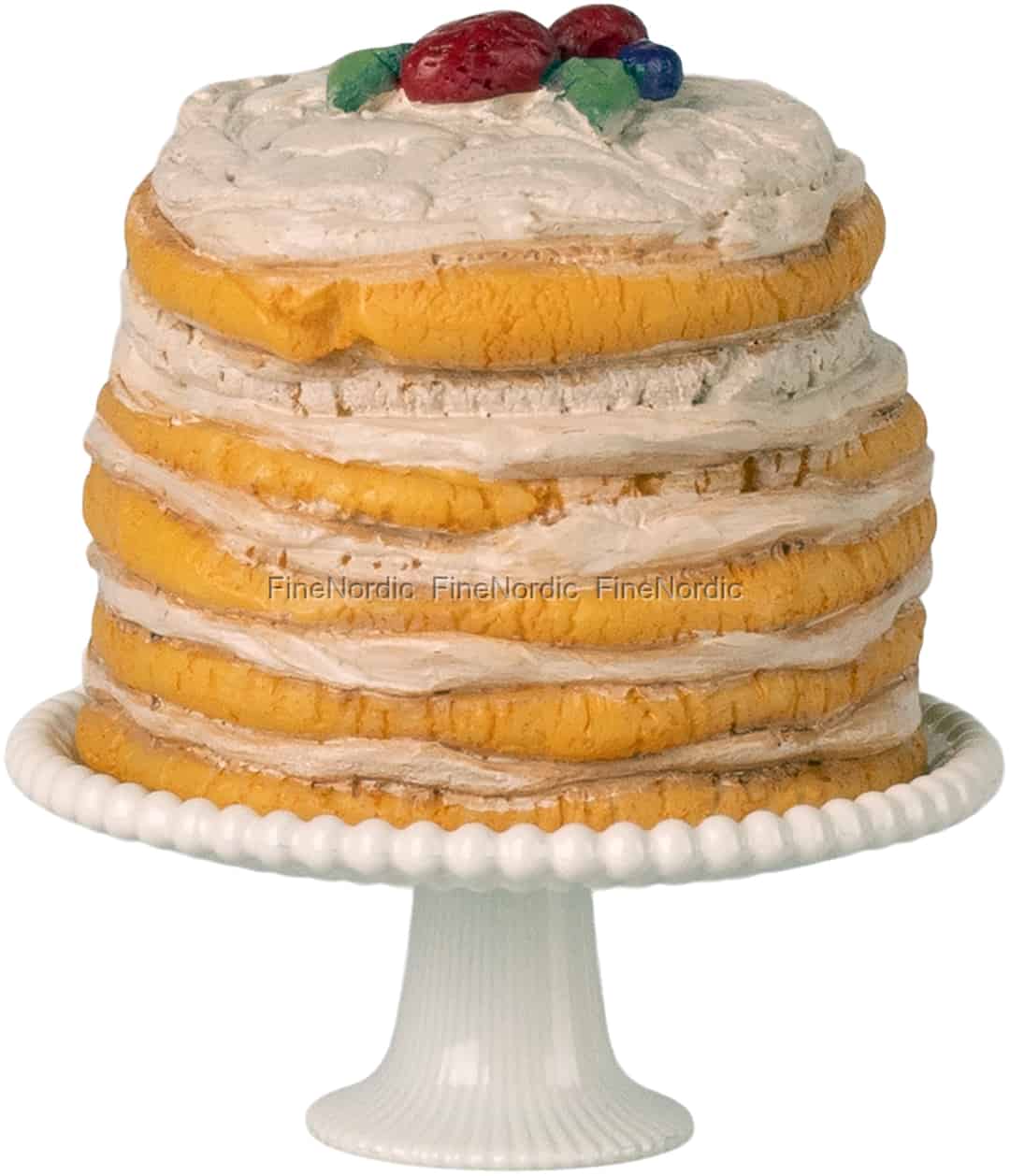 It's time for a party in the mouse house! This beautifully detailed miniature cake, resting on its elegant stand, is ready to be the star of the show. Imagine the delight as your Maileg friends gather for a special occasion.