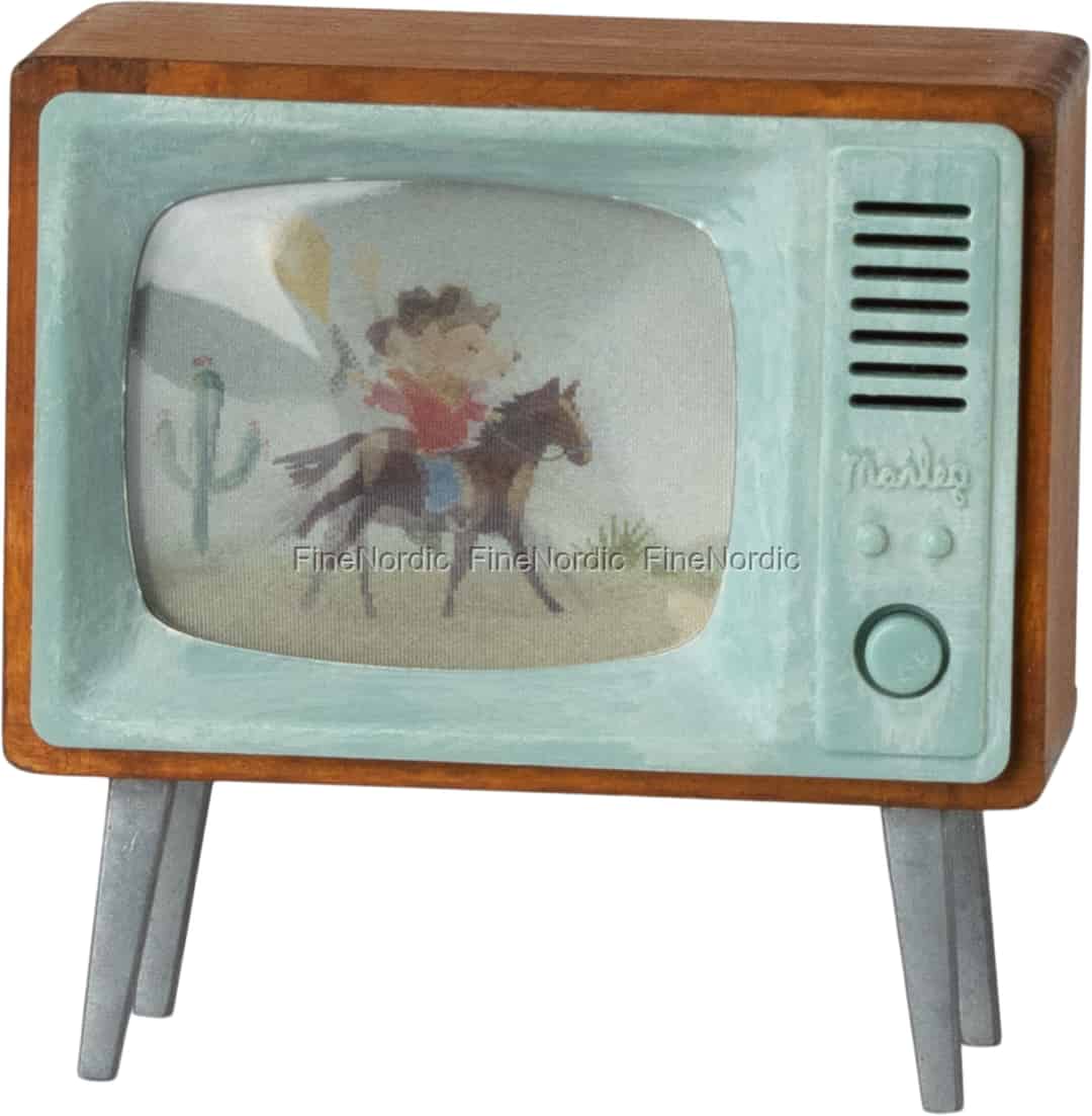 Gather the little mice for an evening of enchanting stories. This beautifully crafted miniature television, with its charming retro design, is ready to become the heart of their tiny living room, sparking endless tales of adventure.